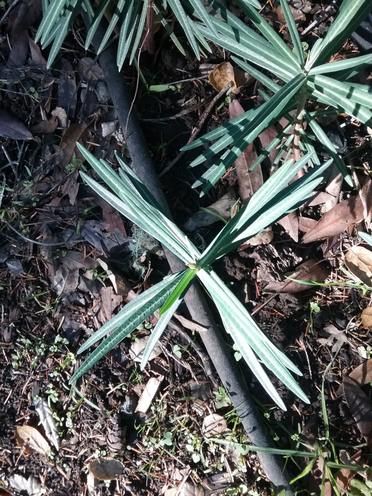 'MOLE PLANT', 'GOPHER PURGE'. Narrow, blue-green, pointed 6" leaves set