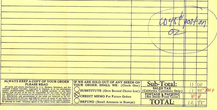 J. L. HUDSON, SEEDSMAN, BOX 337, LA HONDA, CALIFORNIA 94020-0337 USA Click here to enter J.L. Hudson Seed website.